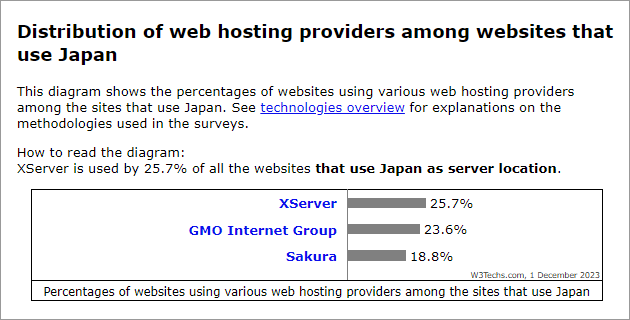 W3Techs(※1)が提供するホスティングシェアの調査において、